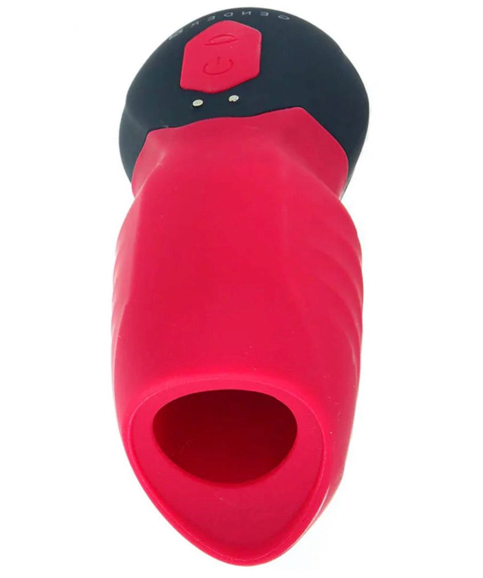 Once it's in position, you'll be able to play with seven possible modes of throbbing, pulsing air pressure suction and another seven of rumbly vibration using dedicated power/function buttons. Vibration throbs through the big, swollen area above (or below, depending on how you're holding it) the suction opening, and can be enjoyed any way you or they like.